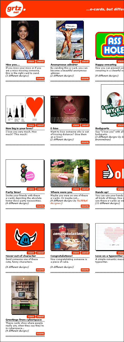 E-card website gemaakt in eigen beheer. Een van de voor Grtz.net ontworpen e-cards (Miss You) werd ook uitgegeven als "echte" Boomerang freecard.